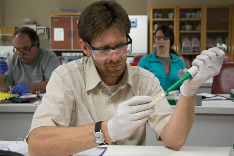Flathead Valley Community College students participate in a plant DNA barcoding experiment, one of several biotech awareness events.