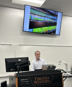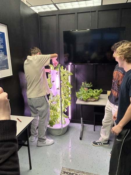 On 4/16/2025 the owner of Fox Urban Farms, based out of Winchester, VA spoke to a group of 29 students and staff about his vertical hydroponic farm. He gave a fantastic presentation on the different varieties of lettuces, microgreens, and edible flowers they produce and explained his business model and how they generate revenue. He transparently explained the costs that arise working with technology and students asked a lot of questions and were very engaged with the speech.