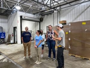 On June 27, 2025 the Ag-Tech team took a trip to Goochland, Virginia to tour Greenswell Growers. We were able to see each segment of their operation and understand their biosecurity practices. Gus Brennan, Head Grower and Director of Operations, and one of our BILT members, led us through his facility. They have multiple products that are in grocery stores including Essential Green Leaf, Refreshing Romaine Blend, Vibrant Greens Blend, and Tender Butter Blend. Pictured is David Berry, Mallory White, Cynthia Fairbanks, and Gus Brennan with photos taken by Amy White.