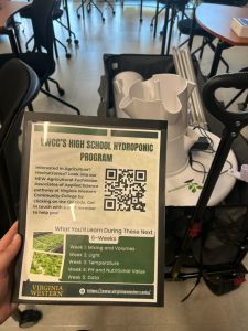 In early November, Mallory and Cynthia attended Senior Saturday on campus at VWCC. They had a small hydroponic unit from Crop King that they used as a talking point when advertising the Ag-Tech program to prospective students. They talked about the individual Agriculture and Mechatronics options as well and were able to get students emails to send more information to in Spring 2025 who showed interest in the program.