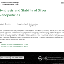 This lab, presented by the National Nanotechnology Coordinated Infrastructure, uses silver nanoplates as a tool to explore the relationship between shape and optical properties. Students will be able to compare material properties and behaviors at both the nano- and macroscale through the exercise, as well as experience with scale and unit conversion. A 'Teacher's Preparatory Guide' is included, featuring needed materials, detailed procedural instructions, and additional resources. A 'Student Guide' includes detailed, step-by-step instructions, space for recording data, and analysis questions.