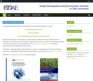This website, provided by the Global Development and Environment Institute at Tufts University, provides information regarding the economic, science, technology, and issues surrounding environmental policy and development. Users can access teaching modules for economics instruction. Additional educational resources are also provided on the website.