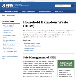 The U.S. Environmental Protection Agency's site on household hazardous waste stresses the importance of household waste awareness. Household waste may come from single or multiple family dwellings, hotels and motels, and other types of residences. This site answers frequently asked questions about the problem of discarding potentially hazardous wastes.