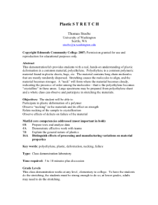 This learning activity will be helpful for students learning about plastic deformation. Specifically, the exercise looks at plastic deformation in polyethylene, which is found in plastic sheets, bags and other common items. Students will participate in plastic deformation of a polymer, observe "necking" in the material and its effect on strength and relate the behavior of the sample to crystallization. This activity would be suitable at any level, from elementary school to college, with each age group gaining different educational benefits. The lesson should take about 5 to 10 minutes of class time, plus time for discussion. This document will serve as a framework for instructors and may be downloaded in PDF format.