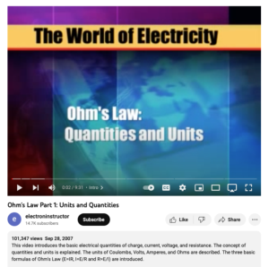 This video provides an overview of Ohm's Law and "introduces the basic electrical qualities of charge, current, voltage, and resistance. The concept of quantities and units is explained. The units Coulombs, Volts, and Ohms are described. The three basic formulas of Ohm's Law (E=IR, I=E/R and R=E/I) are introduced." This video runs 9:32 minutes in length.