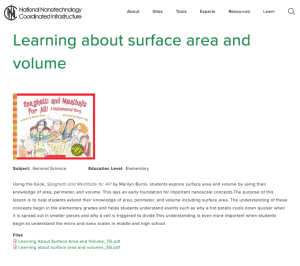 This lesson, presented by the National Nanotechnology Coordinated Infrastructure, covers the general concepts of area, perimeter, and volume to include surface area. Early exposure to the concepts of geometry, and broad concepts related to the elementary ideas of nanotechnology, are introduced to prime students for more advanced science and technology education in later grades.