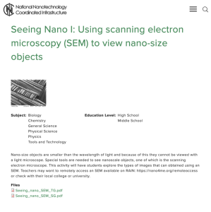 Seeing Nano I: Using Scaning Electron Microscopy (SEM) to View Nano-Size Objects
