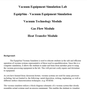 Included is background information about the EquipSim Vacuum Simulator, steps to complete each activity, student questions, and screenshots of the software to guide users through the activities.