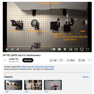 This video, from the National Center for Optics and Photonics Education, serves as a brief introduction to Interferometry, or the scenario in which "waves, usually electromagnetic, are superimposed in order to extract information about the waves," for investigative purposes. Discussed in this video are the parts that make up Interferometric machines, including: flat mirrors, interference patterns, beamsplitter cubes, flat mirrors, spatial filters, collimating lenses, and lasers.