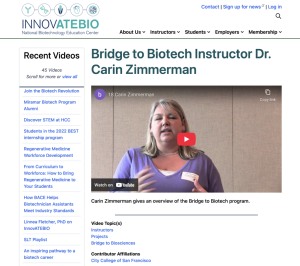 Bridge to Biotech Instructor Dr. Carin Zimmerman