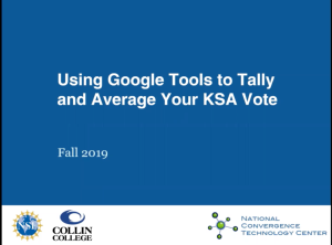 This 20-page document and supplemental video was developed by the National Convergence Technology Center (CTC) to provide a detailed, step-by-step guide to using free Google tools to streamline the job skills voting process with business councils. Rather than hand-counting raised hands and entering the counts into a vote spreadsheet manually, Google forms and Google sheets allow for real-time, automated vote tallying and averaging, which saves time in the job skills meeting. Whether in the meeting in person or calling in remotely, business SMEs can use a smartphone or laptop to open the Google form URL and vote on job skills. The video runs 32:03 minutes in length.