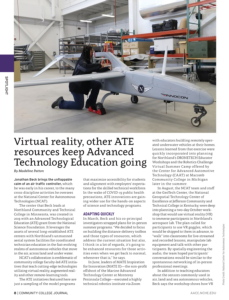 This 2-page article, from Community College Journal, describes several initiatives from the National Science Foundation (NSF) Advanced Technological Education (ATE) community. The article briefly describes these initiatives and how they adapted during COVID-19. The initiatives are led by community college faculty and involve teaching cutting-edge technologies that utilize virtual reality, augmented reality, and other remote-learning tools. These initiatives include the National Center for Autonomous Technologies (NCAT), MATE Inspiration for Innovation (MATE II), DRONETECH, the Center for Advanced Automotive Technology (CAAT), and more. "The ATE initiatives featured here are just a sampling of the model programs that maximize accessibility for students and alignment with employers' expectations for the skilled technical workforce."