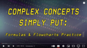 In the video, viewers practice the use of formulas and flowcharts in C++. The video begins with a review of formulas and flowcharts. The Visual Studio feature, step through, is then highlighted. The function setw() is also explored. The video recording runs 30:32 minutes in length.