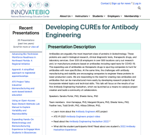 In this video, published by InnovATEBIO, Sandra Porter and Sheela Vemu explore antibody engineering research projects. The video largely focuses on the results of an Antibody Engineering Hackathon, which was launched as a means to catalyze project creation and build a community of collaborators. The video recording runs 24:33 minutes in length.