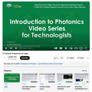 This video, from the Laser and Fiber Optics Regional Center, is the third of eight lectures in the Introduction to Photonics Video Series for Technologists. This video discusses the particle properties of light. An overview of the following topics is provided: photon, absorption, emission, blackbody radiation, and scattering. After viewing this lecture, viewers will be able to: