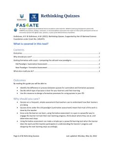 This resource includes the following sections: Outcomes, Why should you care, Getting formative with a quiz - comparing the old and new paradigms, Old paradigm: summative assessment, New paradigm: formative assessment, and What else could you do.