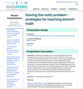 Solving the Math Problem: Strategies For Teaching Biotech Math