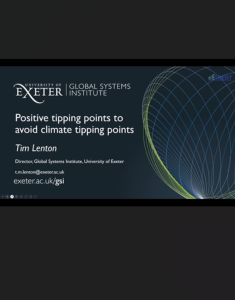 This video from the Building Efficiency for a Sustainable Tomorrow (BEST) National Center is part of the center's 2023 Annual Institute. This video features Tim Lenton, Professor of Climate Change and Director of the Global Systems Institute University of Exeter. In the video, Lenton summarizes "recent evidence regarding climate tipping points, which supports declarations that we are in a climate emergency." Lenton then identifies "positive social tipping points that will need to be triggered to have any hope of limiting global warming to well below 2C."