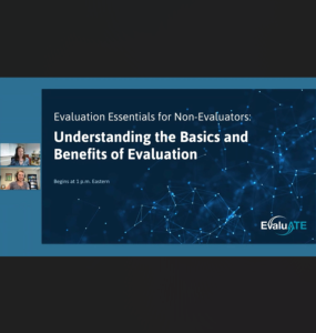This webinar and accompanying informational packet, published by EvaluATE, provide information about evaluation for non-evaluators involved in National Science Foundation (NSF) Advanced Technological Education (ATE) grant programs. In the webinar, Lyssa Wilson Becho from Evaluate discusses "the fundamental concepts of what evaluation is, why it is important, and how it can benefit NSF ATE projects. Practical strategies for finding and selecting an evaluator for a proposal are also included.