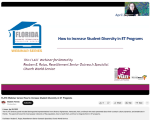 This webinar, from the Florida Advanced Technological Center for Manufacturing (FLATE), provides a brief introduction to FLATE followed by presentations from international professionals who share their respective cultures and insights on increasing diversity. The featured presenters are from Ukraine, Afghanistan, Venezuela, Haiti, and Brazil, each offering an overview of their country, discussing topics such as culture, people, and industry. Along with educating viewers on different cultures, the objective of these presentations is to generate ideas, informed by international perspectives, on marketing programs to students from these nations.