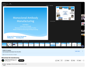 This video, provided by Digital World Biology, is from the 2022 Antibody Engineering Hackathon, an event where teams collaborated to develop Course-based Undergraduate Research projects (CURES) for students studying biotechnology. In this presentation, David Blum, directer of the Bioexpression and Fermentation Facility at the University of Georgia, provides an overview monoclonal antibody production. Blum covers various aspects of manufacturing antibodies, including the hybridoma process, machinery used, stable cell line production, and more. Additionally, Blum discusses the history of monoclonal antibody production and the monoclonal antibody products industry.