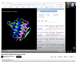 This video, provided by Digital World Biology, is from a series of tutorial videos for iCn3D, a web-based three-dimensional visualization and structural analysis platform for molecular structures. During this tutorial, presenter Sandra Porter provides step-by-step instructions on how to look at properties of amino acids in iCn3D. The tutorial covers topics such as changing the drawing style of an amino acid, identifying and coloring amino acids by charge, and understanding the color code corresponding to each charge.