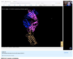 This video, provided by Digital World Biology, is from a series of tutorial videos for iCn3D, a web-based three-dimensional visualization and structural analysis platform for molecular structures. During the video, presenter Sandra Porter discusses using iCn3D to predict whether an antibody will be able to bind to new SARS-CoV-2 variants found on Nextstrain.org, a real-time tool for tracking and comparing SARS-CoV-2 variants. Topics taught in the video include: