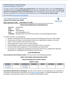 This 7-page syllabus and 5-page course outcome summary, published by Northeast Wisconsin Technical College (NWTC), provide information on the Telecommunications Networks course offered by NWTC. The course "prepares students for the differing telecommunications networks that are utilized in the industry."