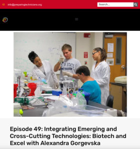 In this podcast episode, published by the Center for Occupational Research and Development, Alexandra Gorgevska from Palm Beach State College (PBSC) focuses on the process of modifying PBSC's biotechnology program to meet industry standards, specifically in data knowledge and analysis. Gorgevska emphasizes the importance of business and industry partnerships in adapting programs to meet changing workforce needs and in providing students opportunities to gain hands-on skills. Also discussed is the utility of spreadsheets in biotechnology careers and the implementation of excel skills into biotechnology programs. Provided at the end of the webinar are tips for keeping curriculum relevant to developments in changing industries.
