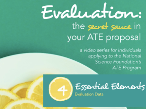 This video, published by EvaluATE: Evaluation Resource Center for Advanced Technological Education, is the fourth in a six-part series for applicants in the process of writing proposals for a National Science Foundation (NSF) Advanced Technological Education (ATE) grant. Each part in the series covers a different aspect of the role of evaluation in an ATE grant proposal. In this video, key aspects of how to write about and understand evaluation data in an ATE grant proposal are outlined. The video covers what evaluation data is collected, and data collection, analysis, and interpretation in the context of an ATE grant proposal. An example of an evaluation data matrix is shared, with time spent discussing the components of an evaluation data matrix.