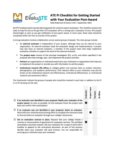 ATE PI Checklist for Getting Started with Your Evaluation Post-Award