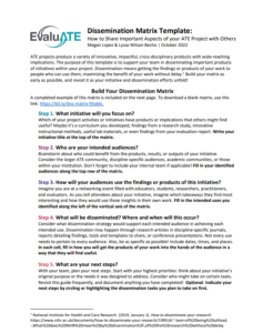 This 2-page template, provided by EvaluATE: Evaluation Resource Center for Advanced Technological Education, features the dissemination matrix, which is a tool that assists Advanced Technological Education (ATE) grantees in disseminating products and initiatives from within projects. Included is a brief background of dissemination in ATE projects, a step-by-step guide to filling out the dissemination matrix, and an example of a completed dissemination matrix.