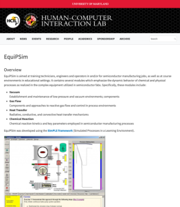 EquiPSim is a simulation-based learning environment that was created by the Human-Computer Interaction Lab at the University of Maryland. EqiuPSim was designed to train technicians, engineers, and operators in semiconductor manufacturing jobs and in educational settings. This software was developed using the SimPLE framework (Simulated Processes in a Learning Environment).