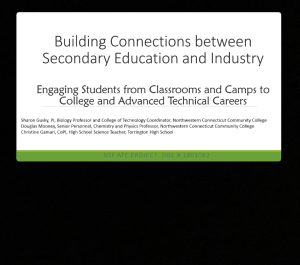 This video, from the Engaging Students From Classrooms and Camps to College and Advanced Technological Careers project, was presented at the HI-TEC 2020 Conference. During the video, the presenters describe how project members connected high school teachers and students with local industry in an effort to develop a strong technical workforce. Project activities and the impacts on middle school and high school teachers are discussed. Project activities included career days, field trips, summer camp, summer externships for teachers, and more.