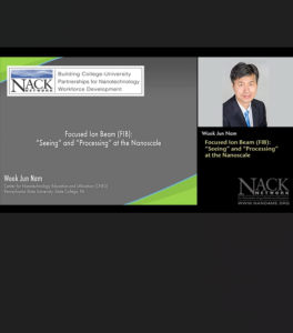This video, published by the Nanotechnology Applications and Career Knowledge Support (NACK) Center at Pennsylvania State University, covers the focused ion beam (FIB) and its use for preparing materials for sample analysis. In the video, Wook Jun Nam from Pennsylvania State University defines and provides an overview of FIB, walks through the operation of FIB, and discusses the various applications of FIB. Covered are concepts such as the eucentric point, FIB grain contrast, and transmission electron microscopy (TEM) sample preparation.