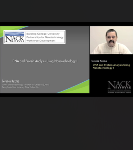This video, provided by the Nanotechnology Applications and Career Knowledge Support (NACK) Center at Pennsylvania State University, is part one of a two-part lecture on materials modification in nanotechnology, specifically focusing the use of nanotechnology for DNA and protein analysis. During the lecture, Terry Kuzma from Pennsylvania State University discusses micro array technology and the use of micro arrays, covering concepts related to microfluidics. Additionally, hardware and materials used to build microfluidic devices are discussed