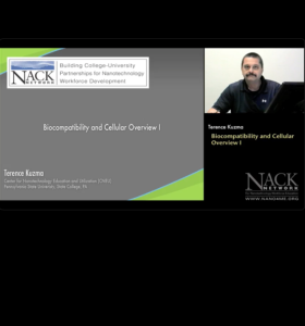 This video, provided by the Nanotechnology Applications and Career Knowledge Support (NACK) Center at Pennsylvania State University, is part one of a four-part lecture on the interactions between biological entities and products crafted on a nanoscale, with a focus on nanoparticles for drug delivery. In this part of the lecture, Terence Kuzma from Pennsylvania State University provides an overview of cellular interaction as a basis for later discussion of cellular applications in nanotechnology. Kuzma analyzes the makeup of a generic animal cell, discussing cell scale and size, DNA structure and assembly, and more.
