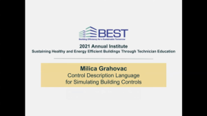 Given at the 2021 BEST Annual Institute: Sustaining Healthy and Energy Efficient Buildings Through Technician Education, this presentation discusses control description language (CDL) as a foundation for the digitized control delivery process. CDL is a declarative language that uses block diagrams to express control algorithms for buildings. Grahovac begins with a short introduction of CDL basics and then discusses CDL technology, OBC controls delivery, environmental impacts, and standardization. A demo of a simple controller and a model simulation are also included.