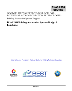 BUAS 2030: Design and Installation is one of nine courses in the Building Automation Systems Technician program. This 22-page instructor guide outlines the course, which serves as an introduction to "... the fasteners, equipment, tools, and methods for installing building automation system components." Concepts and principles of previous courses are also brought together and applied to the design and commissioning of automation systems.