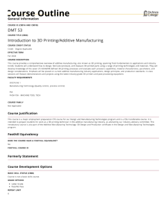 DMT 53: Introduction to 3D Printing/Additive Manufacturing