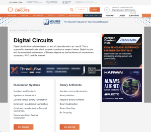 This resource, made available by EEtech Media, LLC., is the fourth in a series of six online textbooks about electric circuits. This book covers digital circuits and includes 17 chapters: Numeration Systems, Binary Arithmetic, Logic Gates, Switches, Electromecahnical Relays, Ladder Logic, Boolean Algebra, Karnaugh Mapping, Combinational Logic Functions, Multivibrators, Sequential Circuits, Shift Registers, Digital-Analog Conversion, Digital Communication, Digital Storage (Memory), Principles of Digital Computing, and Contributor List.