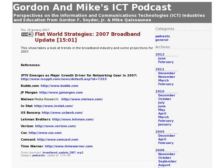 Gordon and Mike's ICT Podcast offers perspectives on the information and communication technologies (ICT) industries from Gordon Snyder and Mike Qaissaunee. In this podcast, Mike and Gordon take a look at trends and projections for the broadband industry in 2007. The running time for this show is...