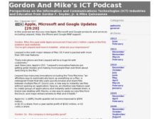 Gordon and Mike's ICT Podcast offers perspectives on the information and communication technologies (ICT) industries from Gordon Snyder and Mike Qaissaunee. In this podcast, Mike and Gordon discuss "new Apple, Microsoft and Google products and services including Leopard, Vista, the iPhone and Google...