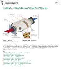 This lab, presented by the National Nanotechnology Coordinated Infrastructure, covers the concept of chemical reactions. Students will learn about "the reactions involved in catalytic converters and the importance of nanocatalysts in the reactions." Teacher Preparation Guides, Student Guides, and...