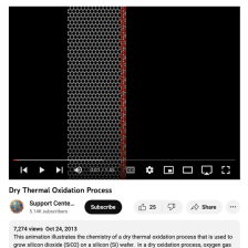 In this video, created by Support Center for Microsystems Education (SCME), viewers can watch an animation on the dry thermal oxidation process. This animation "illustrates the chemistry of a dry thermal oxidation process that is used to grow silicon dioxide (SiO2) on a silicon (Si) wafer. In a dry...