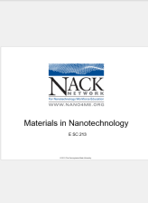 This collection, from the Nanotechnology Applications and Career Knowledge Support (NACK) Center at Pennsylvania State University), includes materials from the undergraduate laboratory course titled Materials in Nanotechnology. The following nine units are included in the...