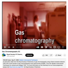 This video, distributed on YouTube by the Royal Society of Chemistry, is on the basic principles of Gas Chromatography. This video is a short primer which introduces the technique and instrumentation. There are many assumptions that are made in the presentation of this material, due to the fact the...