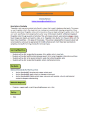 This 5-page resource, made available by the STEM Guitar Project, is an activity on the use of the golden ratio in art. During the activity students will "analyze artwork, watch a lecture/prezi, analyze found images and objects, and watch a video, all on the golden ratio." The learning objectives for...