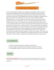 This resource, from the STEM Guitar Project, is an activity on the mathematics of musical scales. "In this activity, students will explore the mathematical principles of musical scales by measuring and graphing the frequencies produced by standard-pitched instruments." This resource briefly...