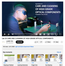 This video from Laser-Tec is part of a series of light and optics experiments. In this lab, participants clean high grade optical components. Participants learn about reasons for cleaning optical components, cleaning tools and solutions, and cleaning techniques. Equipment includes fingercots,...